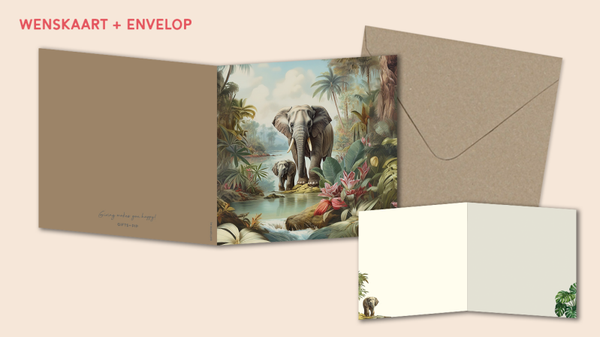 - 1 wenskaartje gevouwen formaat 10,5 x 10,5 cm